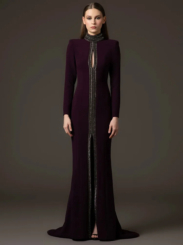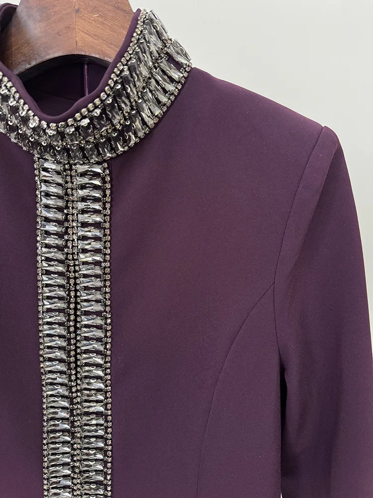 HIGH STREET Newest Fashion 2025 Designer Party Women’s Short Sleeve Stand-up Collar Luxurious Diamonds Beaded Long Maxi Dress