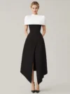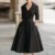 Modigirl Women’s Elegant Gown Midi Dresses 2025 High Waisted V-neck Formal Wedding Guest A-line Classic Black Dresses for Ladies